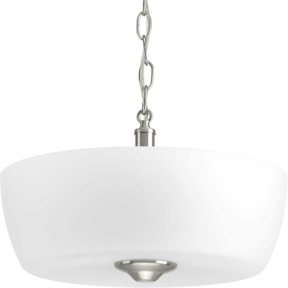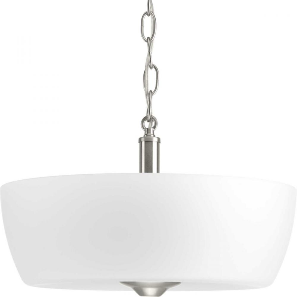 Brushed Nickel finish.;Glass shades large in scale.;Contemporary design.
