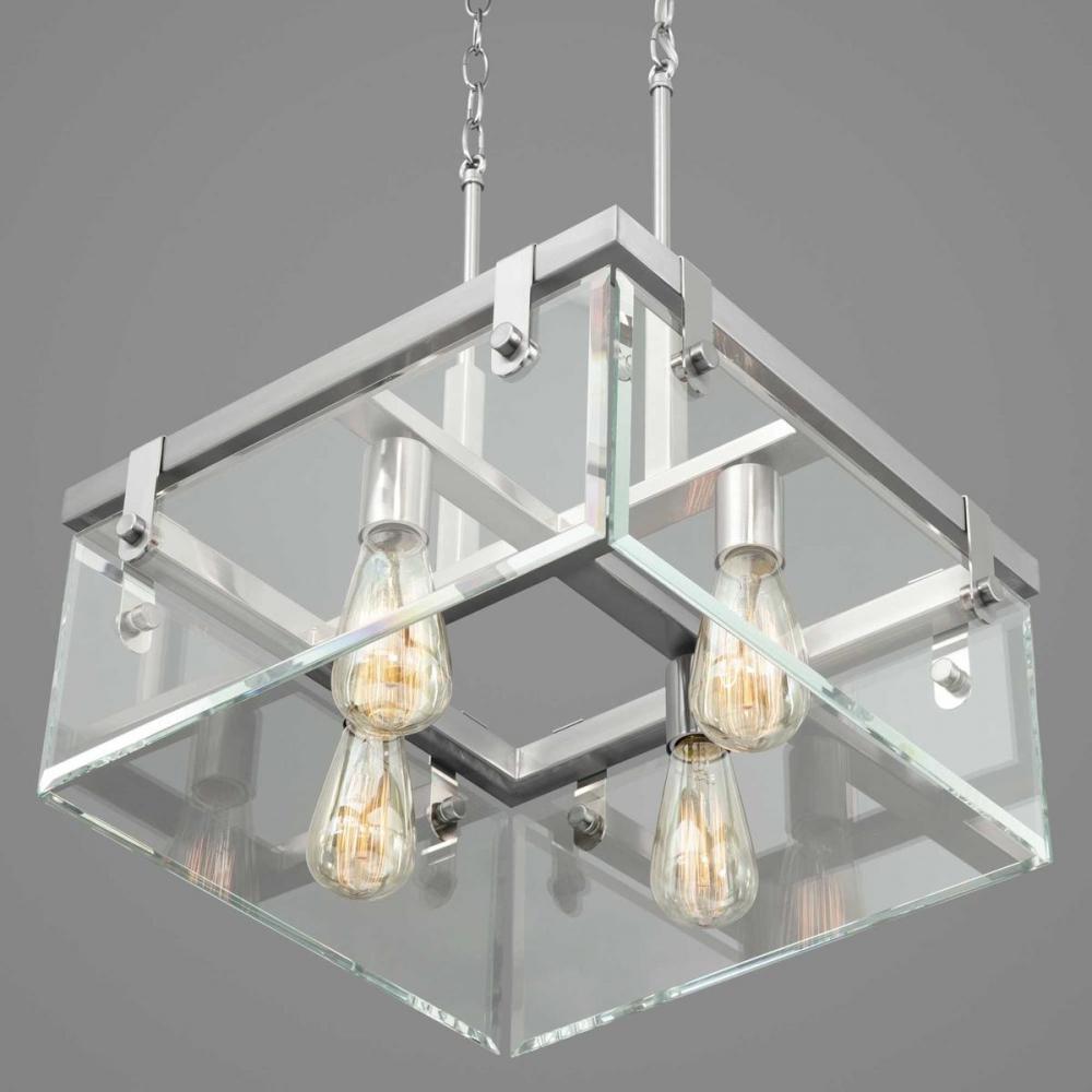 Inspired by modern architecture;The structure of Glayse is the focal point of the design, where form follows function;Four light semi flush convertible;Popular Brushed Nickel finish;The frameless unbounded beveled glass creates beautiful light and reflecti