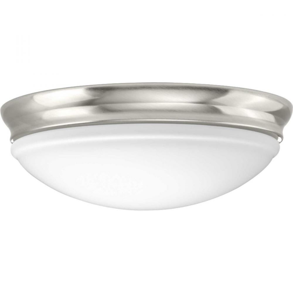 LED Flush mount offers traditional form factor for ambient illumination;The etched glass dominates the design with its distinctive and sculptural bowl;Popular Brushed Nickel finish;The elegant glass is paired with a metallic frame;A natural choice for clos