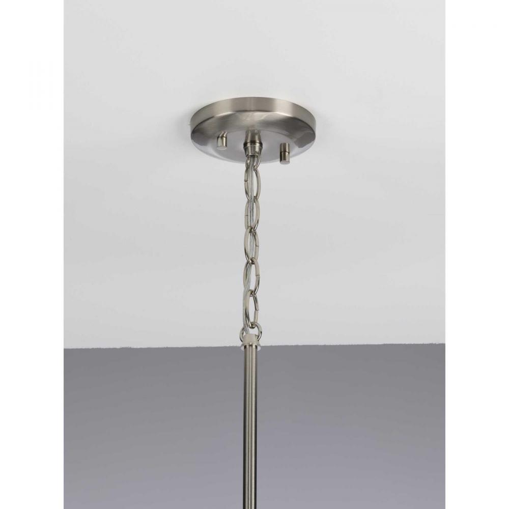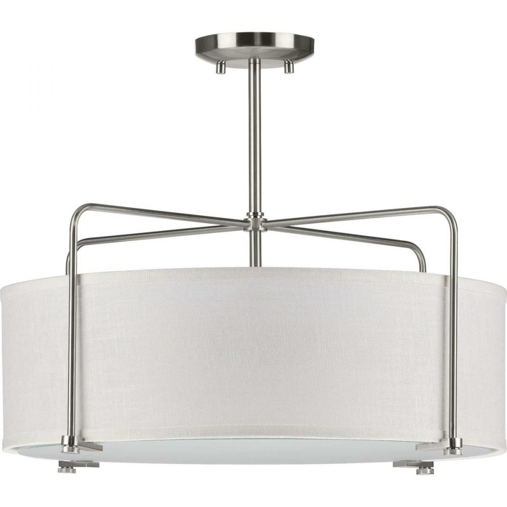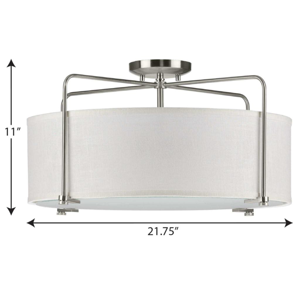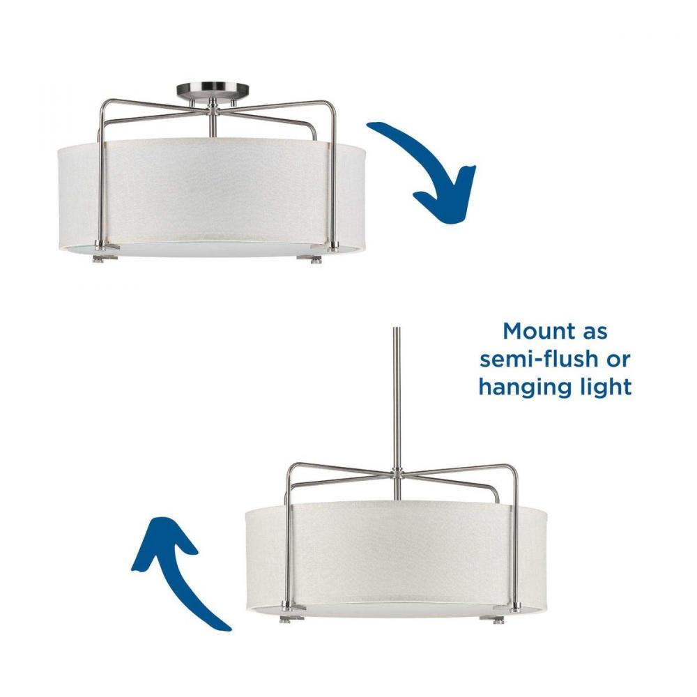 Freshen up farmhouse décor with the stylishly simple Kempsey three-light, semi-flush convertible. The crisp, textured Summer Linen shade, and exposed brushed nickel arms make a statement ceiling fixture over a friendly gathering at a dining table or kitchen island in transitional and farmhouse interiors.