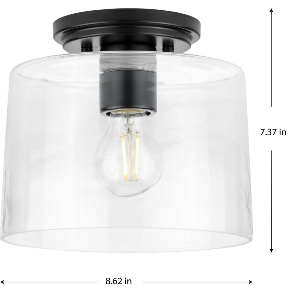 Ideal for a hall, kitchen, bathroom, or foyer;Perfect for new traditional, transitional, and modern farmhouse style settings;Classic matte black finish;Clear glass shade;Includes installation instructions and mounting hardware;Use 1 medium base base bulb t
