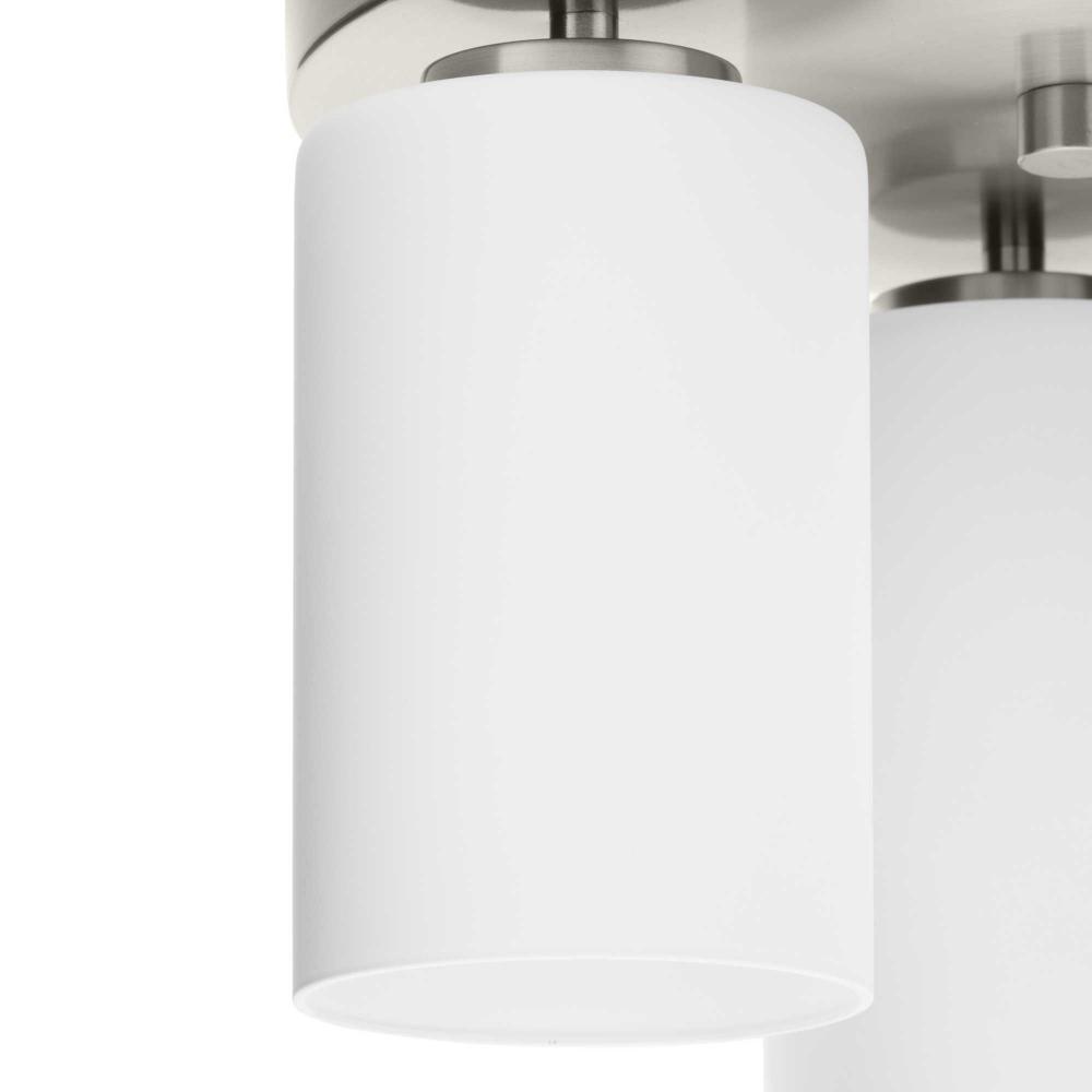 The fixture is coated with a subtle brushed nickel finish, offering an elegant contemporary design