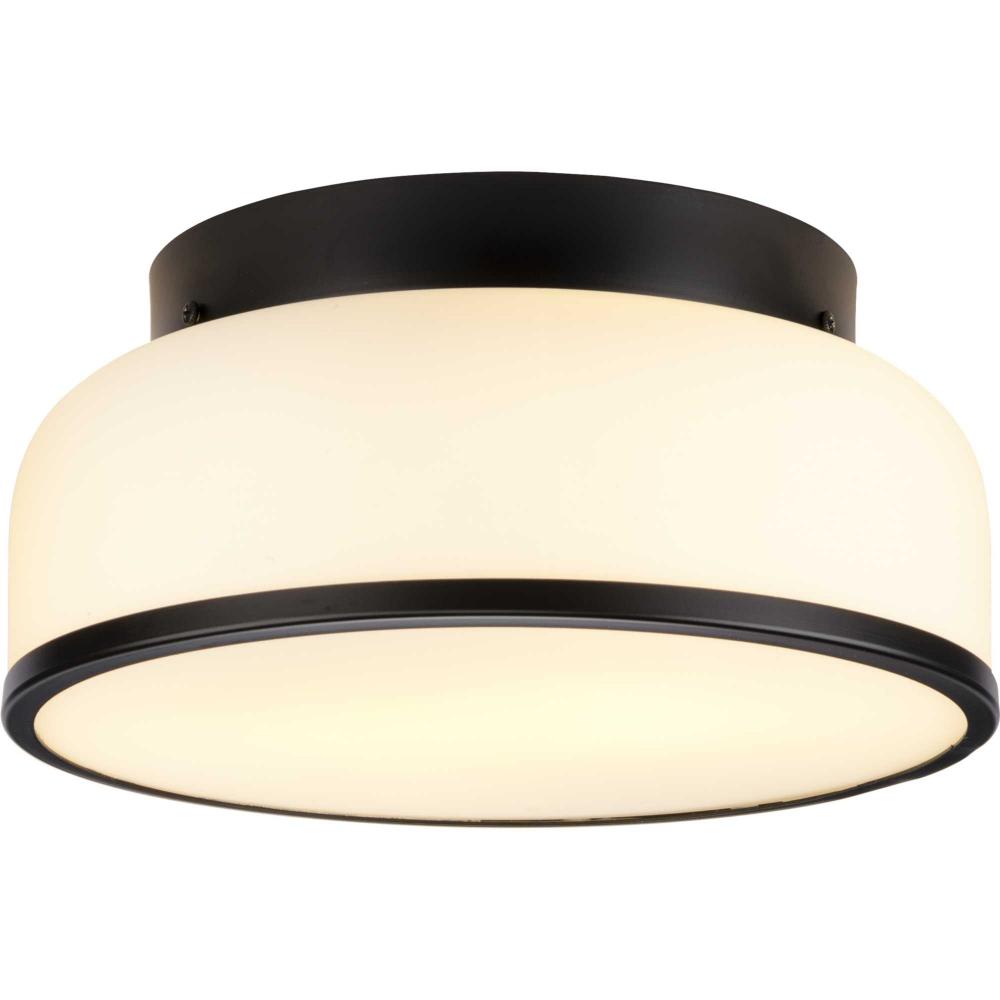 Graceful curves and bold angles combine to create a softly structured look in Parkhurst. An airy frame coated in crisp matte black defines the form and delivers unobstructed layers of light though etched glass shades. The visual appeal of the flush mount will offer a subtle and elegant silhouette over home theaters, bathrooms, or bedrooms in new traditional and contemporary interiors.