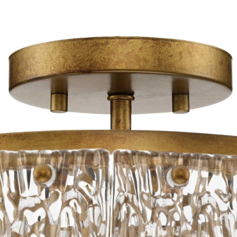 Add luxury and glamour to your home with the elegant Chevall Collection. The Semi-Flush Mount Light combines a layer of distinctive artisanal glass with a richly burnished, Gold Ombre frame. Glimmering illumination creates a sparkling ambiance that fills the room. This fixture is part of the Progress Lighting Design Series, a lighting collection offering fashionable styles and affordable luxury lighting for the home.