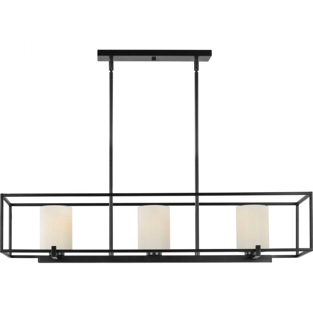 Stick With Simple Geometric Forms And Clean Crisp Lines With The Modern Chadwick Collection'S Three-Light Matte Black Island Chandelier. A Beautiful Etched Opal Glass Shade Visually Calms The Sharp Edges Of The Boxy Frame In A Masterful Stroke Of Design Excellence. The Frame Is Coated In A Matte Black Finish That Visually Contrasts With The Light Shade. The Light Fixture Is Just Right For Spaces In Need Of A Subtle, Feminine Touch.
