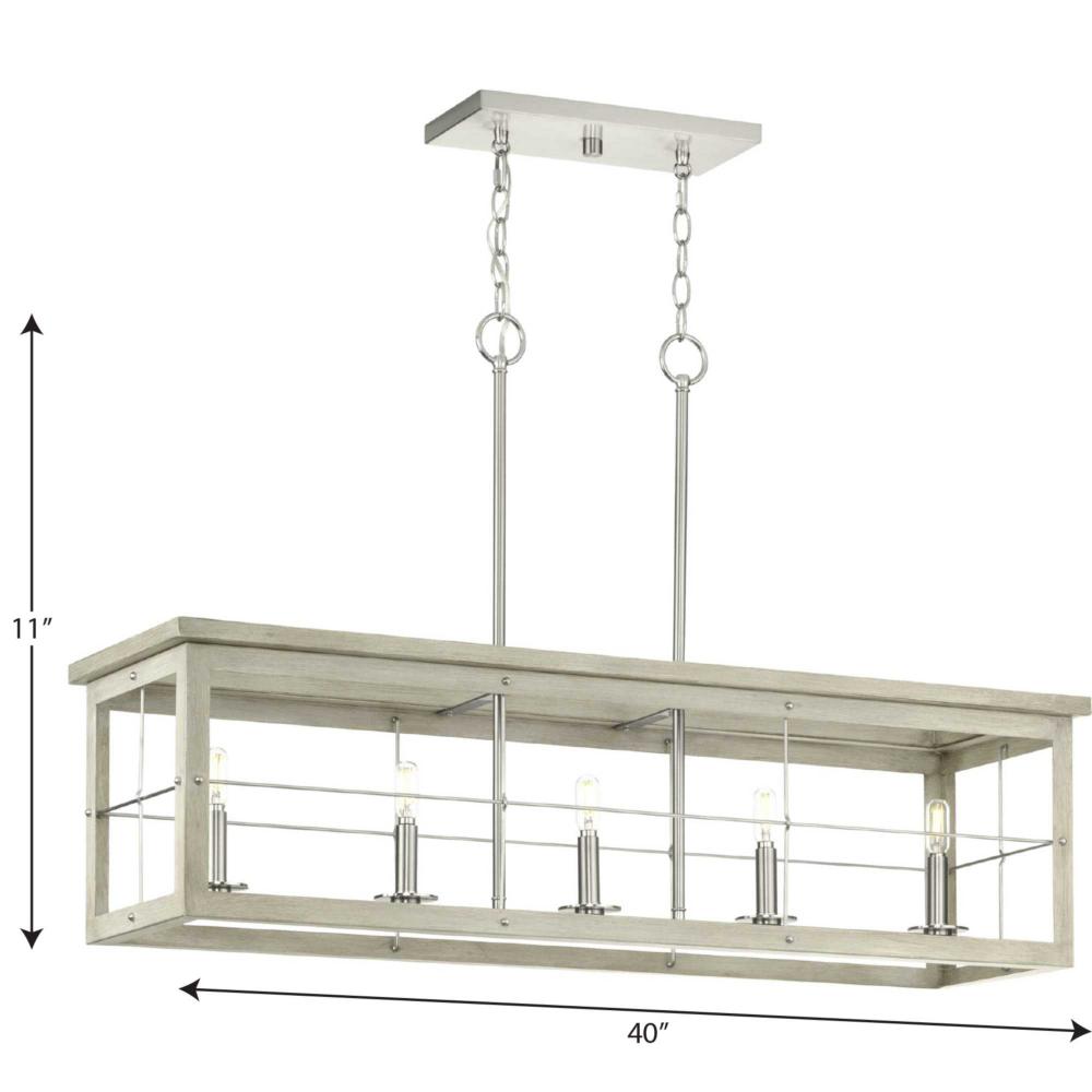 Application: Experience the perfect blend of farmhouse character and urban sophistication with the Hedgerow Collection 5-Light Grey Washed Oak Farmhouse Linear Island Chandelier Light ideal for any kitchen island or dining room table.;Styles: Perfect for f