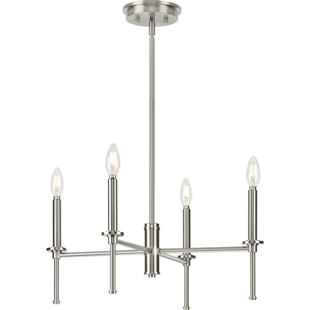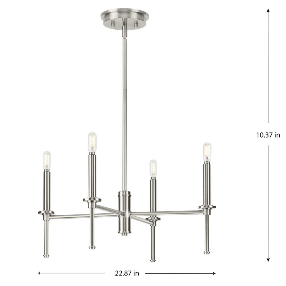 Elara has a clean contemporary design that works across many decor styles. The chandelier features a slender, chic form with stylized finials inspired by a chess pawn for a classically modern look. Select tapered or fabric drum shades, or clear cylindrical glass shades to customize the design and create the perfect amount of even illumination.