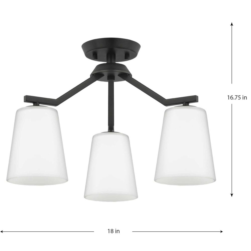 A lovely classic matte black frame define the fixture's distinct, angular silhouette
