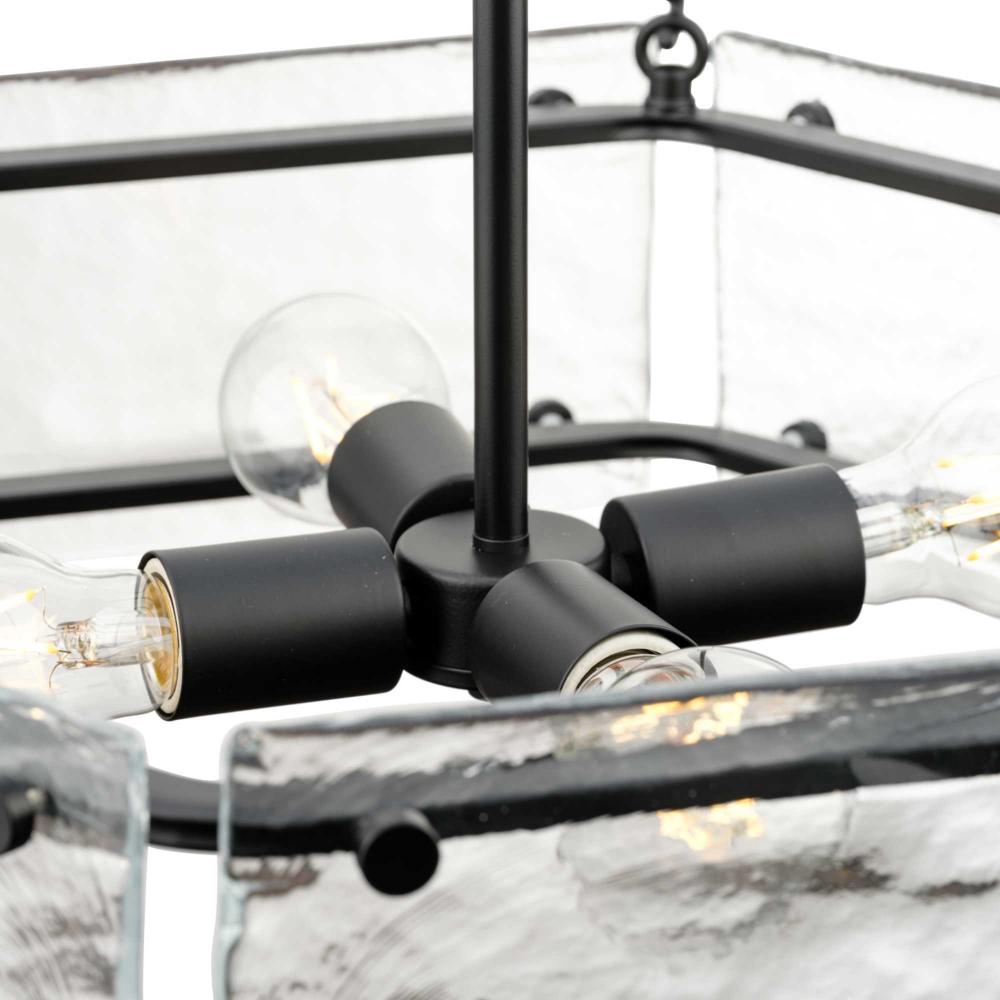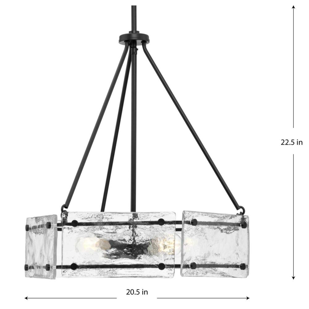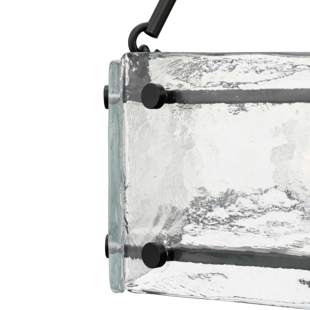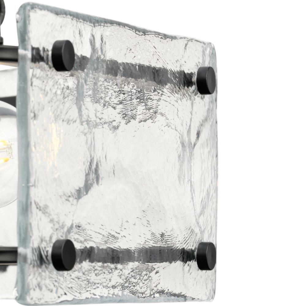 Indulge your artistic sensibility with luxurious lighting from the Rivera Collection. Softly filtered illumination through an icy display creates an otherworldly effect. Linear segments in rich, deep black tones frame billets of handcrafted, clear textured glass in a modern craftsman-inspired design.This fixture is part of the Progress Lighting Design Series, a lighting collection offering fashionable styles and affordable luxury lighting for the home.