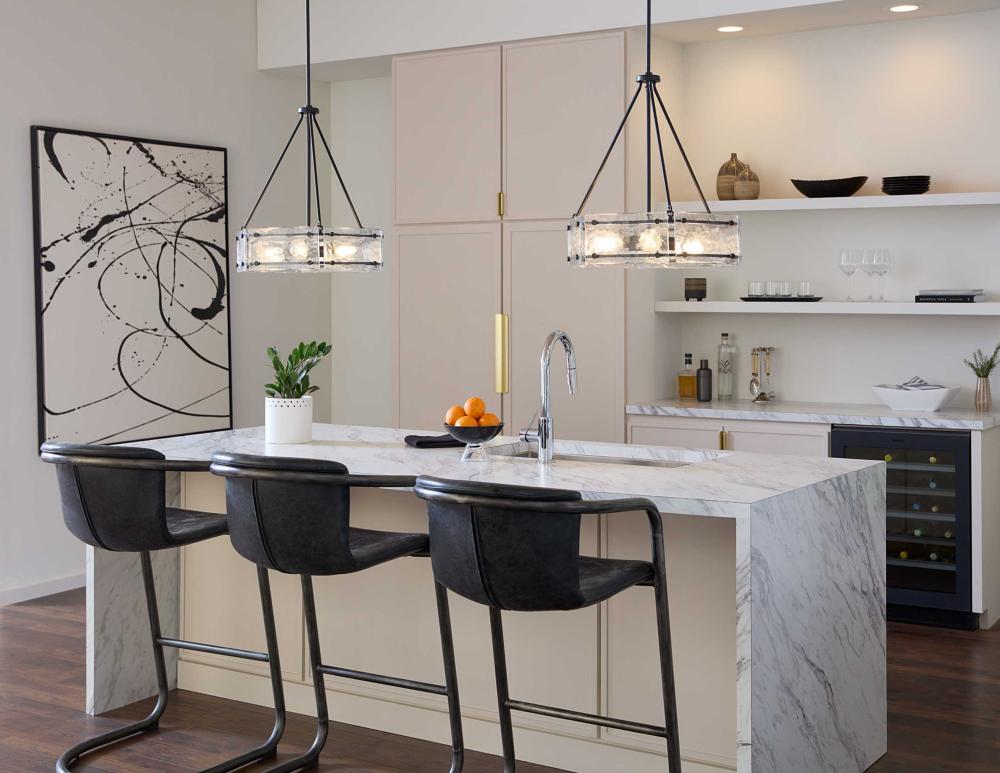 The fixture's artistic demeanor accents dining rooms, great rooms and bedrooms