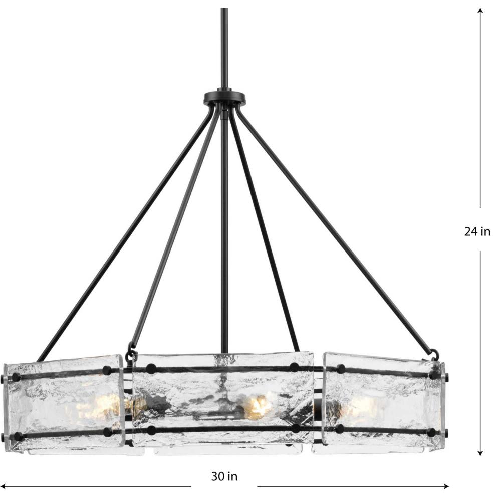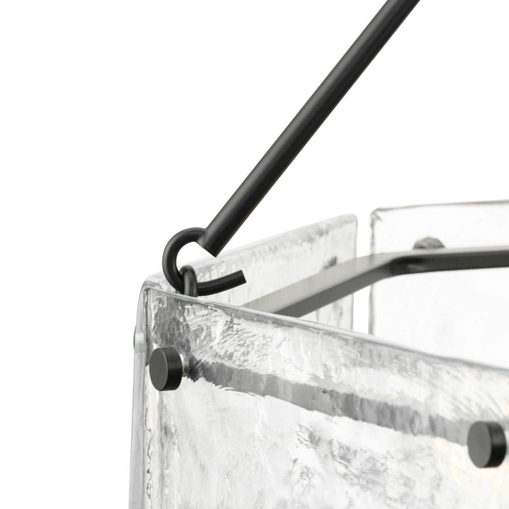 Indulge your artistic sensibility with luxurious lighting from the Rivera Collection. Softly filtered illumination through an icy display creates an otherworldly effect. Linear segments in rich, deep black tones frame billets of handcrafted, clear textured glass in a modern craftsman-inspired design.This fixture is part of the Progress Lighting Design Series, a lighting collection offering fashionable styles and affordable luxury lighting for the home.