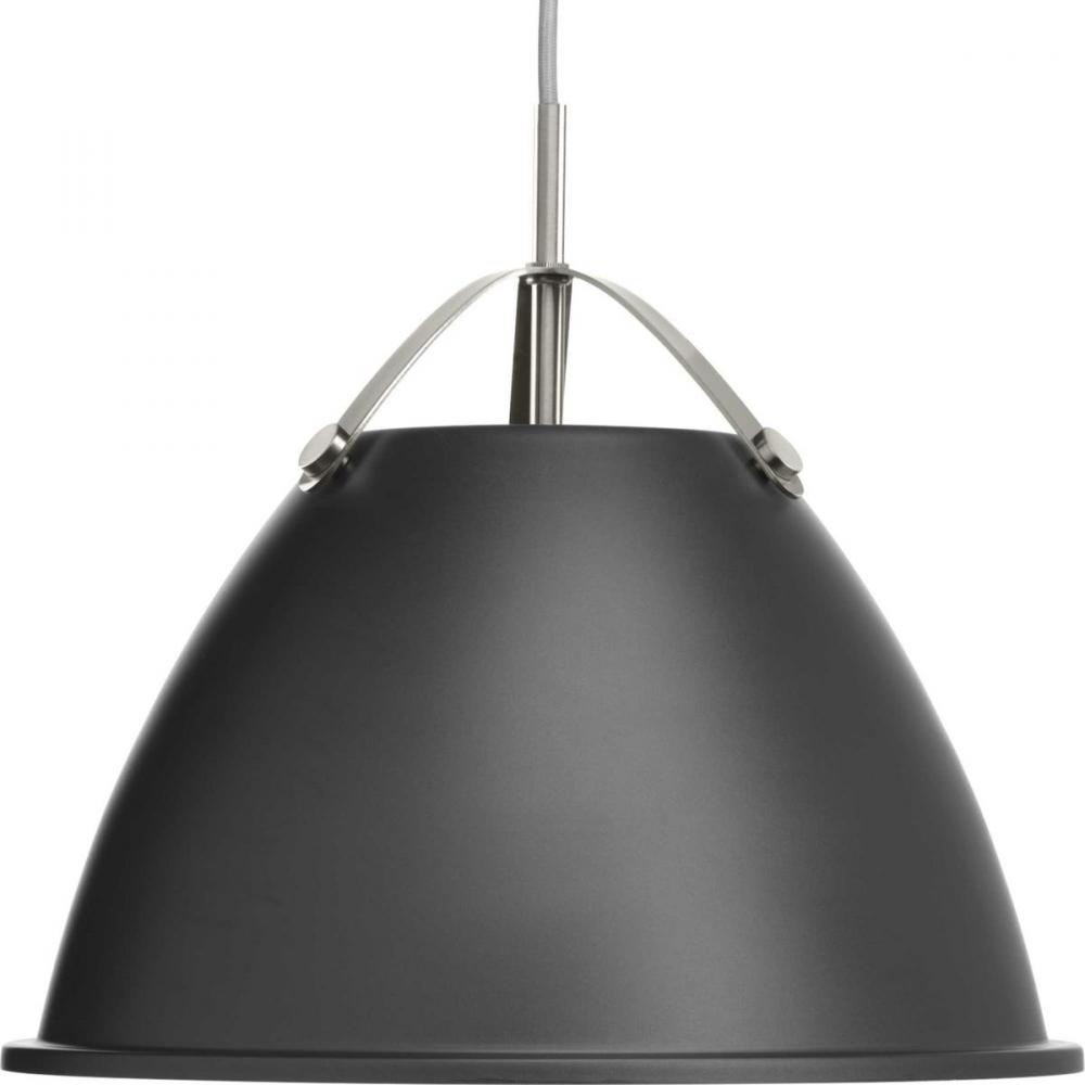 Tre is a classic metal shade 15" pendant with an updated combination of a Graphite dome and Brushed Nickel accents. A tri-arm support adds a sense of architectural and industrial detailing, while the vented shade allows for both downward and upward illumination. Light reflects off the inside of the Vintage Silver shade to provide the final finish effect.