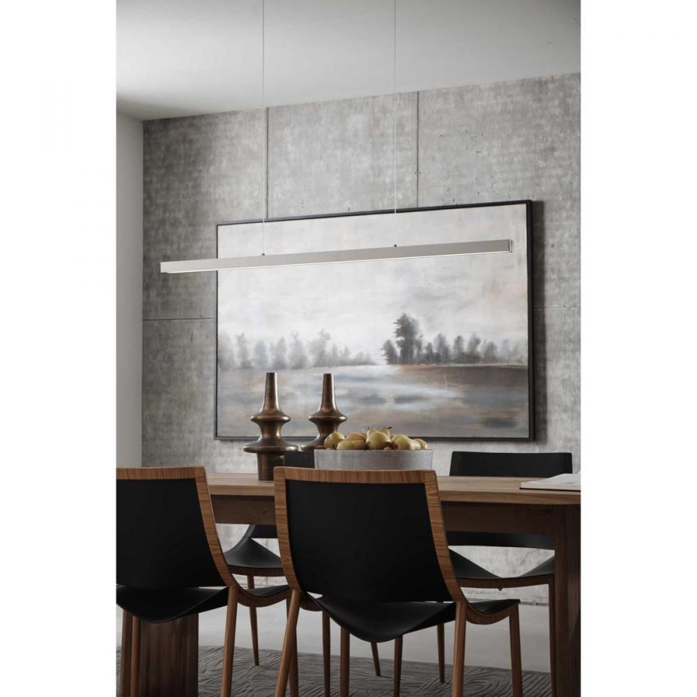 Provide A Dramatic Architectural Lighting Design To Any Space With This LED Pendant. A Smooth Metal Beam With A Brushed Nickel Finish Suspends From The Ceiling To Add Clean Visual Interest To Minimalist Residential Or Commercial Settings. The Frame Holds A Polycarbonate Shade In Place To Complete The Design.