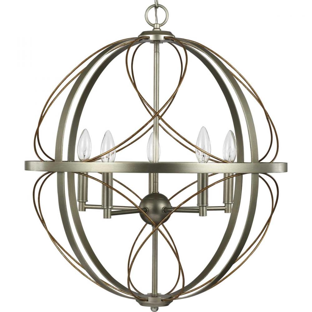 Whimsical and romantic, this pendant features an interlocking sphere with carefully crafted decorative details. The elegant, silver ridge frame captures a tasteful, timeless look with hand-painted accents. The frame's open-cage design is perfect for creating an airy, romanticized glow.
