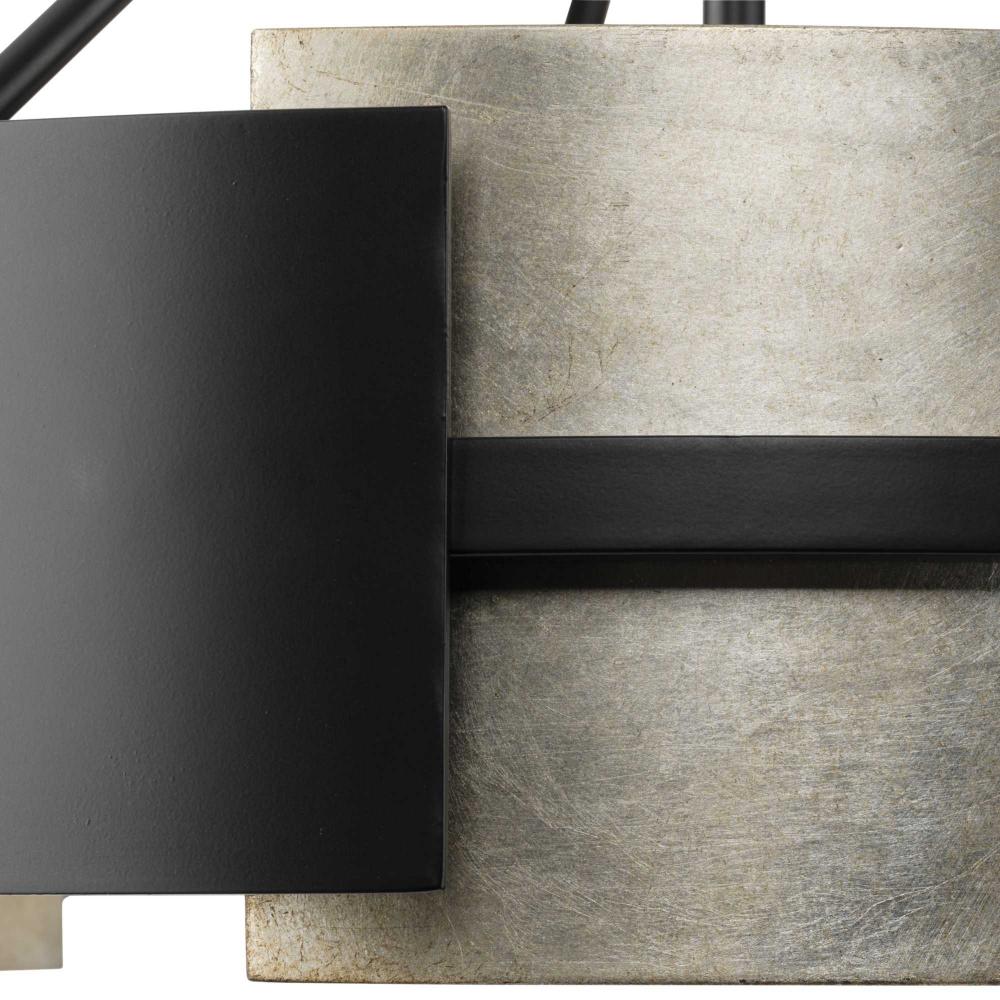 Raise the bar on contemporary design with Lowery. Layered rectangular shields coated in a matte black iron finish are artistically combined with distressed antique silver leaf panels against a black frame. Light sources glowing from inside the structure cast a shimmering reflective illumination that highlights the beautiful contrast between light and dark. Lowery delivers a stately ambient light to dining rooms, great rooms, halls and foyers in luxe industrial, contemporary and rustic modern settings. This fixture is part of the Progress Lighting Design Series, a lighting collection offering fashionable styles and affordable luxury lighting for the home.