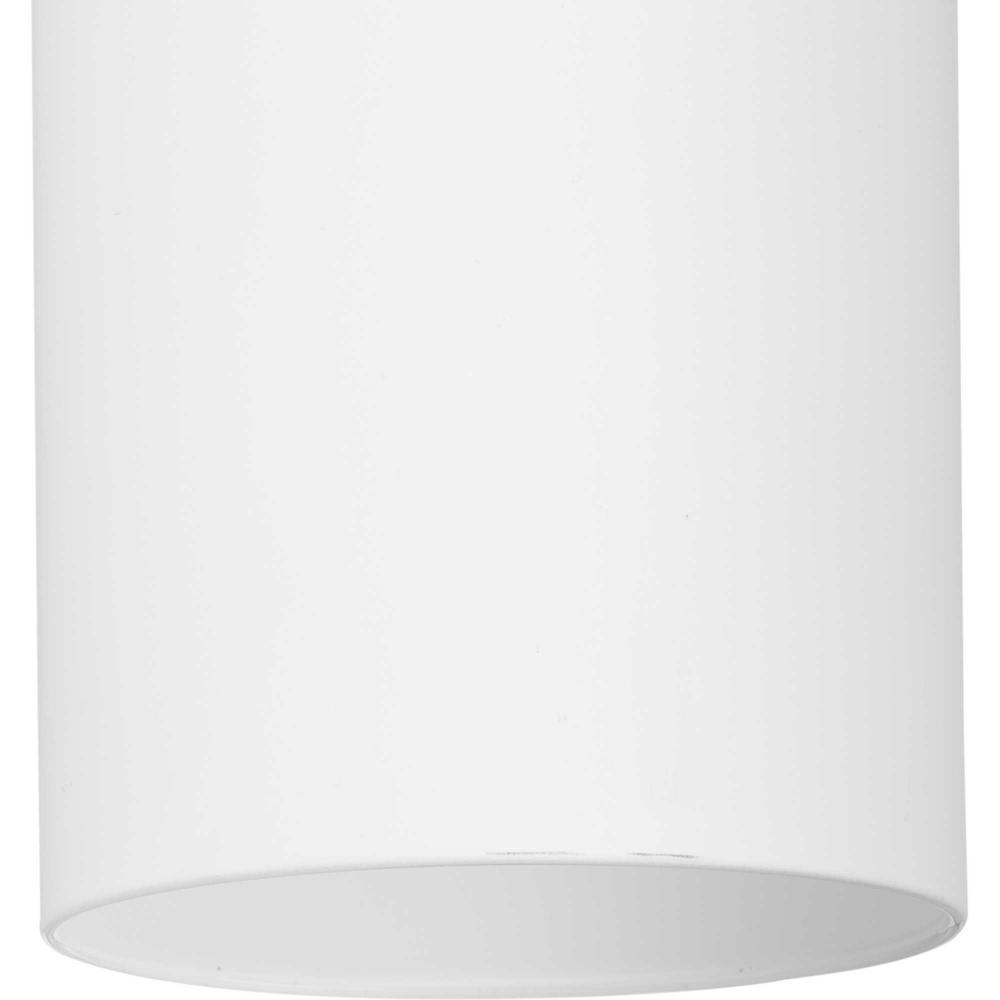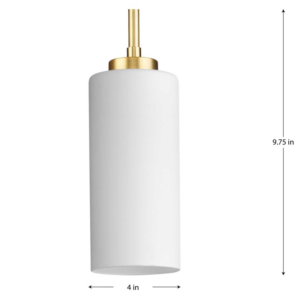 The light's slender design complements mid-century modern, transitional and contemporary settings with a simple round canopy suspended over a cylindrical glass shade
