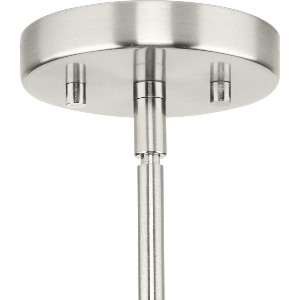 The fixture is coated with a subtle brushed nickel finish, accenting mid-century modern settings with elegance