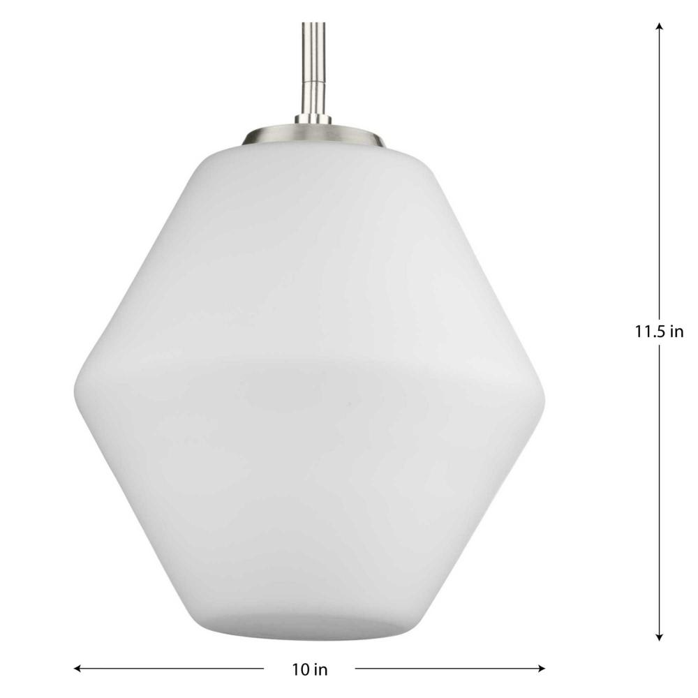A softened diamond silhouette brings modern appeal to the Copeland pendant light. The geometric opal glass shade is fully enclosed, concealing the light source to deliver elegant illumination to mid-century modern and contemporary settings.