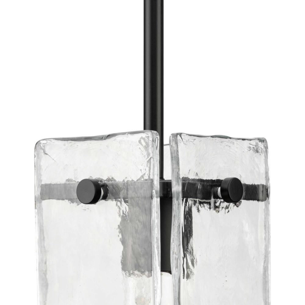Indulge your artistic sensibility with luxurious lighting from the Rivera Collection. Softly filtered illumination through an icy display creates an otherworldly effect. Linear segments in rich, deep black tones frame billets of handcrafted, clear textured glass in a modern craftsman-inspired design.This fixture is part of the Progress Lighting Design Series, a lighting collection offering fashionable styles and affordable luxury lighting for the home.
