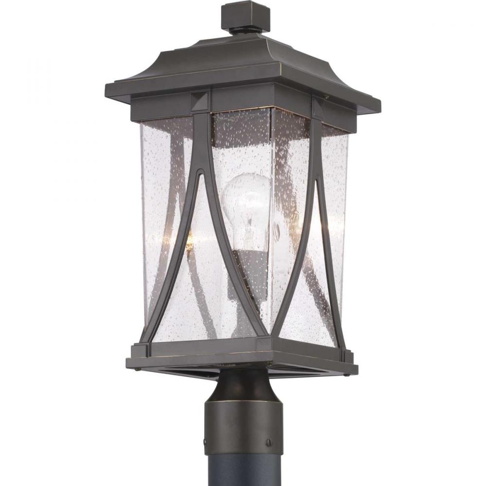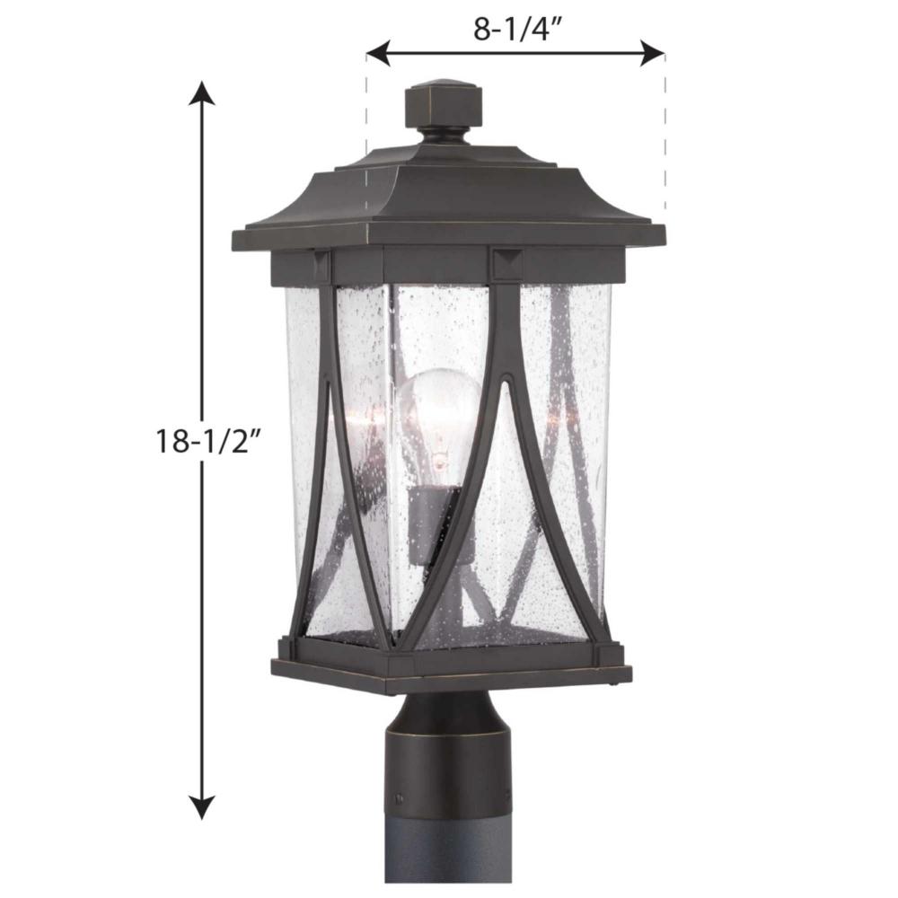 Clear seeded glass, heavy forged details and curving metal accents hearkens back to a Colonial era;The post lantern makes a distinguished greeting at your home’s front walk;The classic lines and sweeping details of the lantern design make it ideal for Tr