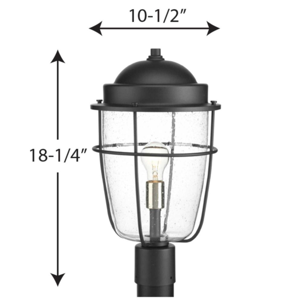 A nautical-inspired collection ideal for a variety of exteriors, including Coastal, Transitional and Urban Industrial settings. The one-light black post lantern with clear seeded glass feature a hint of brushed nickel on the interior. Geometric details offer a finishing touch for wall, hanging and post lantern options.