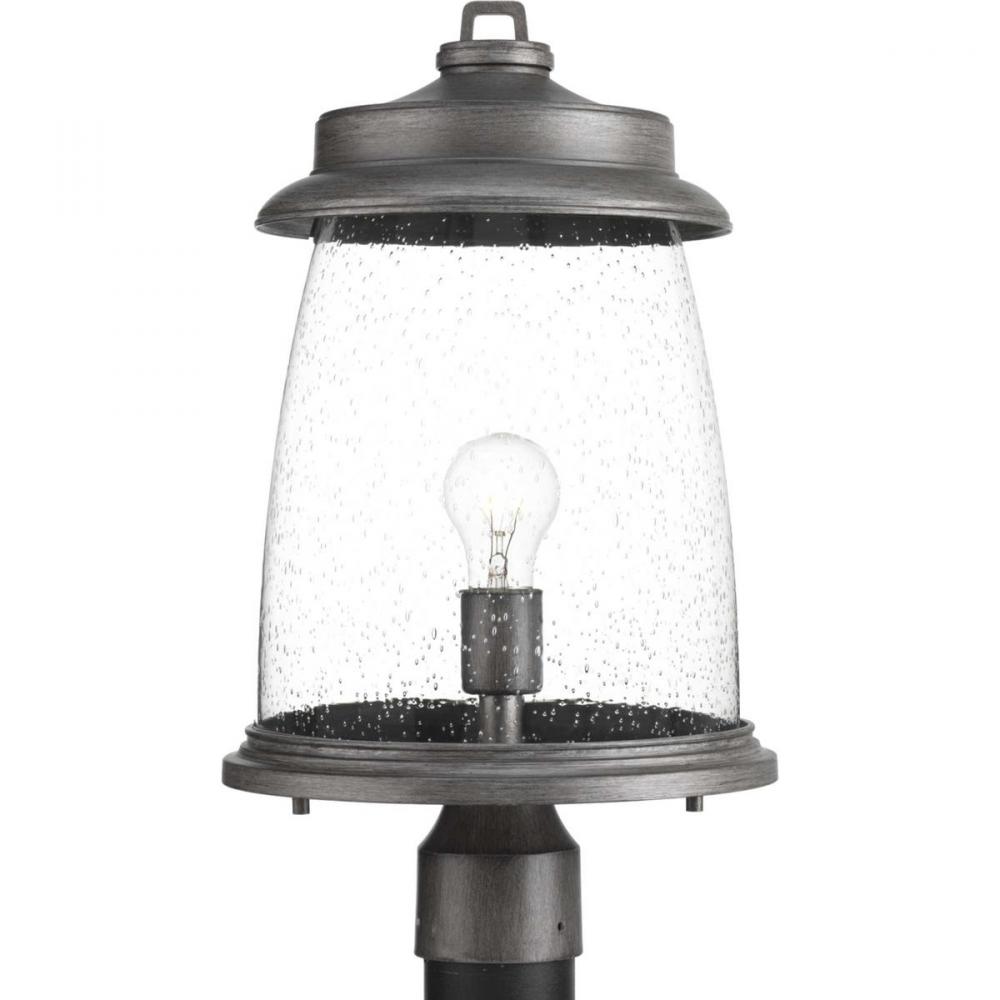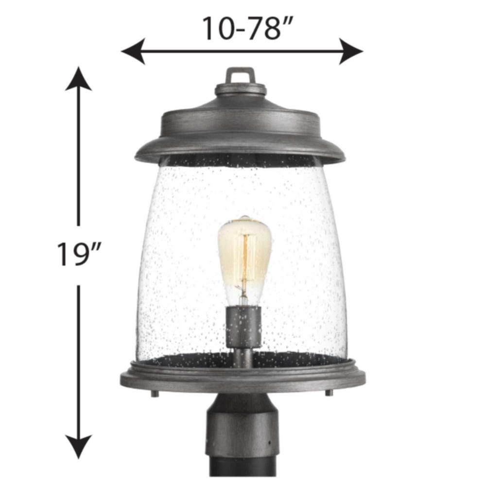 An outdoor lantern collection featuring nautical influences.;Vintage metallic finish enhance curb appeal for a variety of exteriors.;Antique Pewter finish.;Post lantern uses one 100-watt max. medium base bulbs (sold separately).;A protective die cast ring