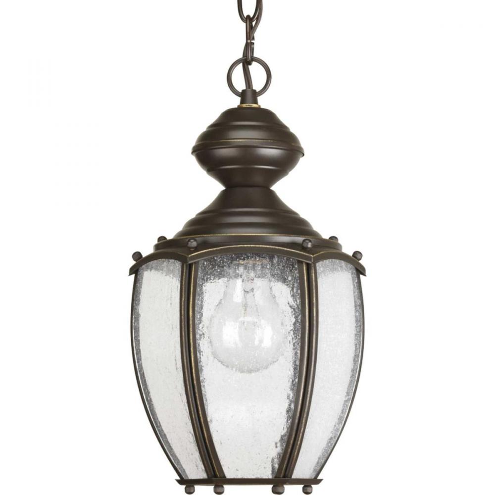 Antique bronze finish.;Clear seeded glass panels.;Rich weathered style.