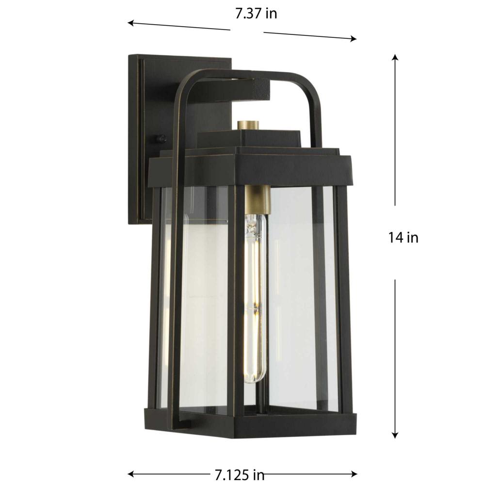 Ideal for a porch, patio, deck, garage, barn, entryway, foyer, or bedroom;Perfect for transitional and farmhouse style settings;Handsome antique bronze finish with brasstone accents;Clear glass flat panels;Includes installation instructions and mounting ha