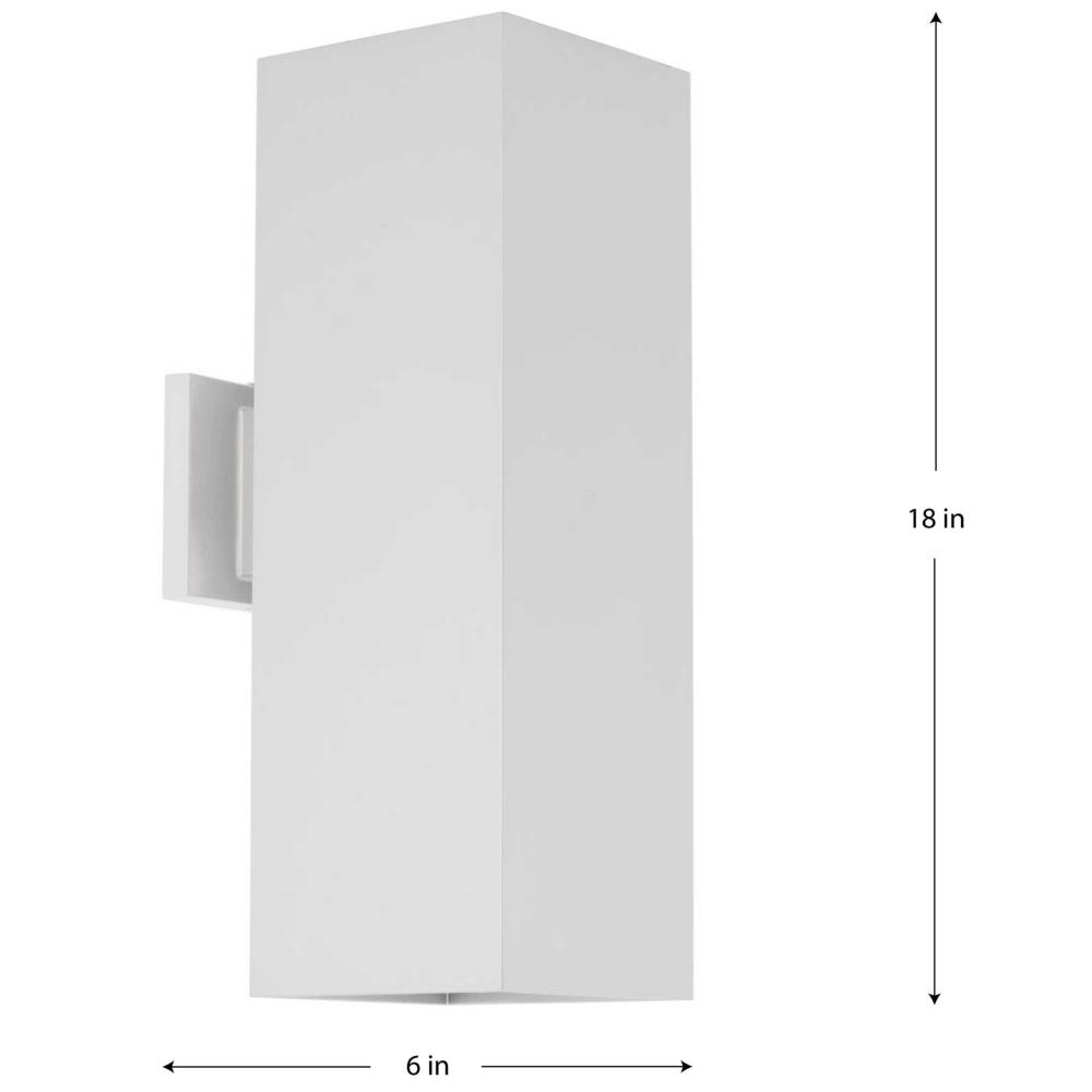 The Square outdoor wall lantern has a clean, modular design is ideal for contemporary settings. Composed of opaque, square panels, crisp light is cast dramatically from the top and bottom of the fixture.Coated in a white finish, Square brings a clean style to modern architecture. Uses Two 250w PAR-38 or 150w BR-40. Wet location listed when used with P860047 top cover lens (sold separately).