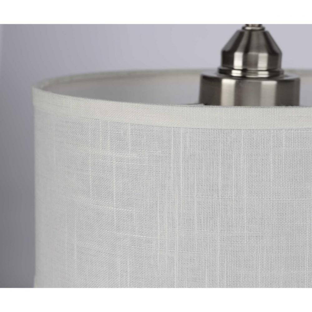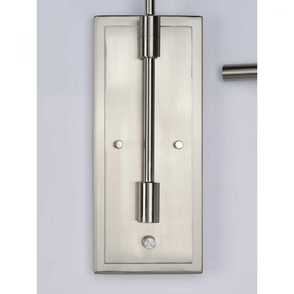Kick back and relax within the pages of your favorite novel under the glow of the Kempsey one-light wall bracket. A smooth, arced arm extends from a rectangular backplate to hold the small, curved bar that supports a clean, Summer Linen shade. With an alluring Brushed Nickel finish, the fixture blends well with transitional and farmhouse interiors where it can provide focused task light while mounted to a wall in a bedroom, office, den, or living room.