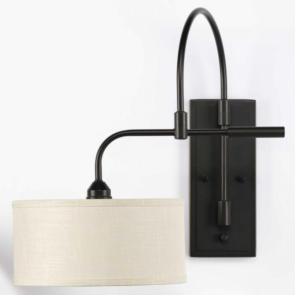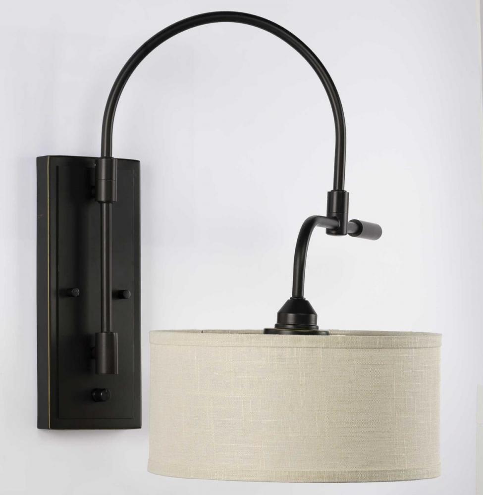 The contrast of a textured Harvest Linen shade supported by a refined, Antique Bronze wall mount makes the Kempsey one-light wall bracket ideal for providing focused task light in a bedroom, office, den, or living room. The union of the rectangular backplate and smoothed, curved arms will make an eye-pleasing piece in any transitional or farmhouse setting.