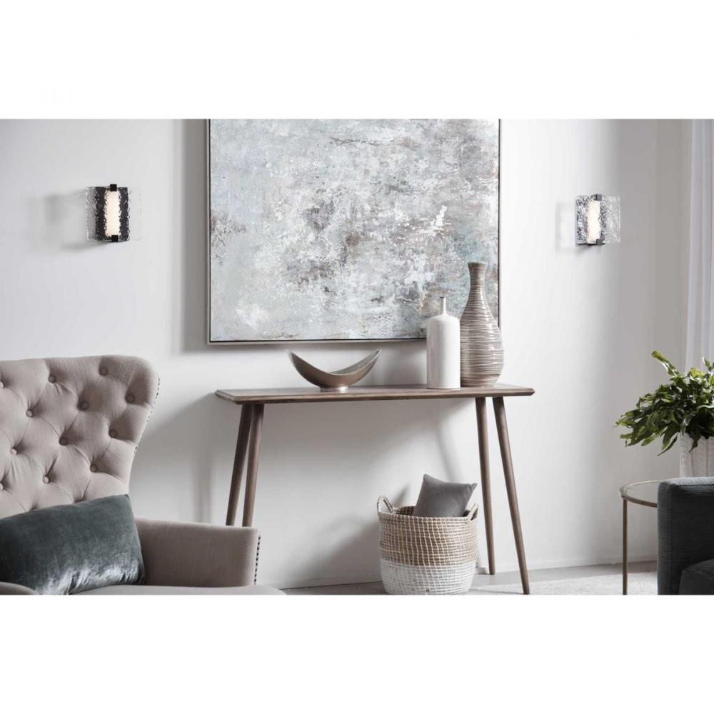The organic features of this wall sconce make it seem like it's one with nature. The handmade, clear stone glass shade steals the show with its underwater-inspired ambiance. The shade is held in place by a minimalist black frame that transforms your home into a naturally beautiful soothing place for you and your family.