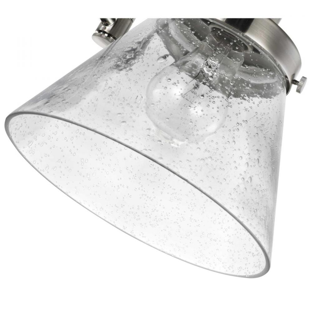 Enjoy focused task lighting with the industrial demeanor of this one-light swing arm wall bracket. A clear seeded glass shade is ready to provide you with focused task light wherever illumination is called upon. The light fixture's signature adjustable arm is coated in a brushed nickel finish and makes this wall light a favorite choice for when you want to read your favorite novel before bed.
