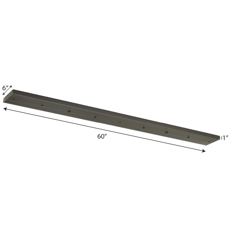 Progress Lighting's canopy accessory offers a convenient way to mount groupings of pendants. This rectangle pendant accessory allows for the hanging of three to five pendants off of one outlet box. Pendants can be hung straight or staggered. The maximum pendant width for three pendants is 18" each and for five pendants 13-1/2" each. Five-Light. Rectangle Canopy Accessory Antique Bronze finish.
