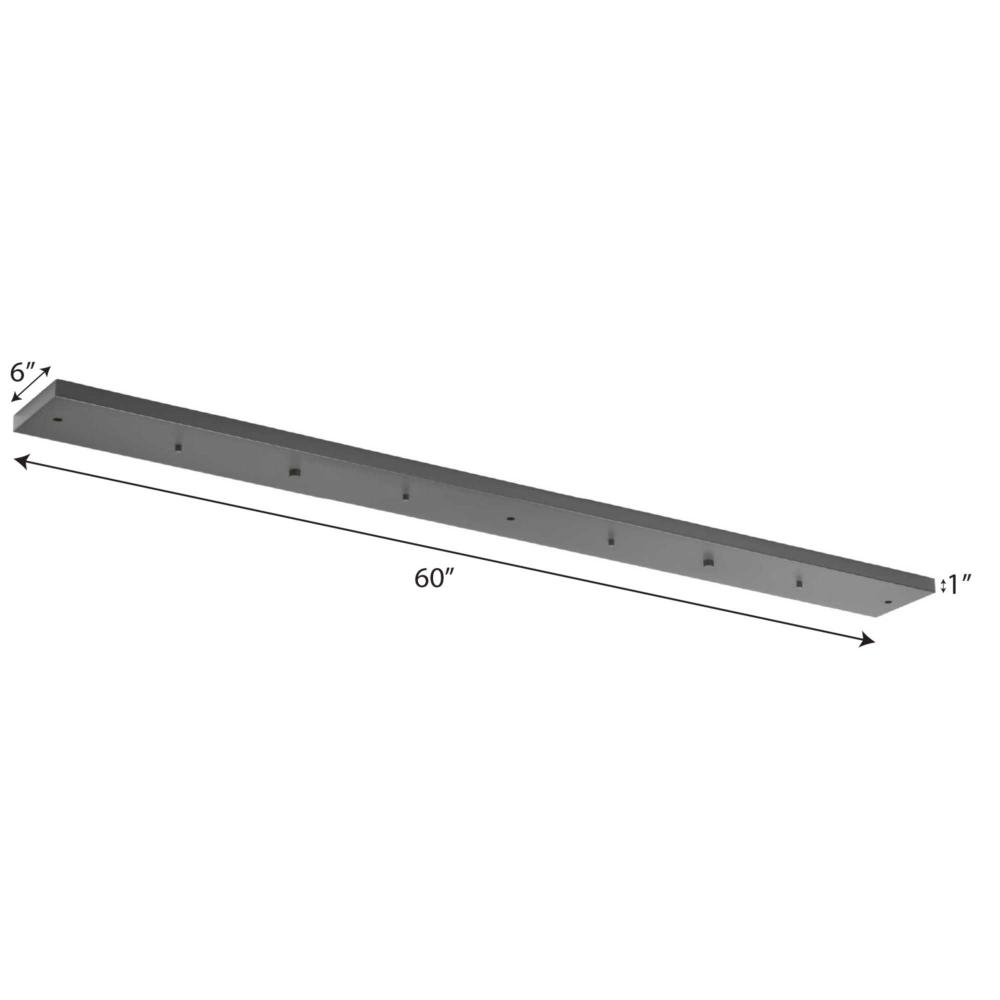 Progress Lighting's canopy accessory offers a convenient way to mount groupings of pendants. This rectangle pendant accessory allows for the hanging of three to five pendants off of one outlet box. Pendants can be hung straight or staggered. The maximum pendant width for three pendants is 18" each and for five pendants 13-1/2" each. Five-Light. Rectangle Canopy Accessory Graphite finish.