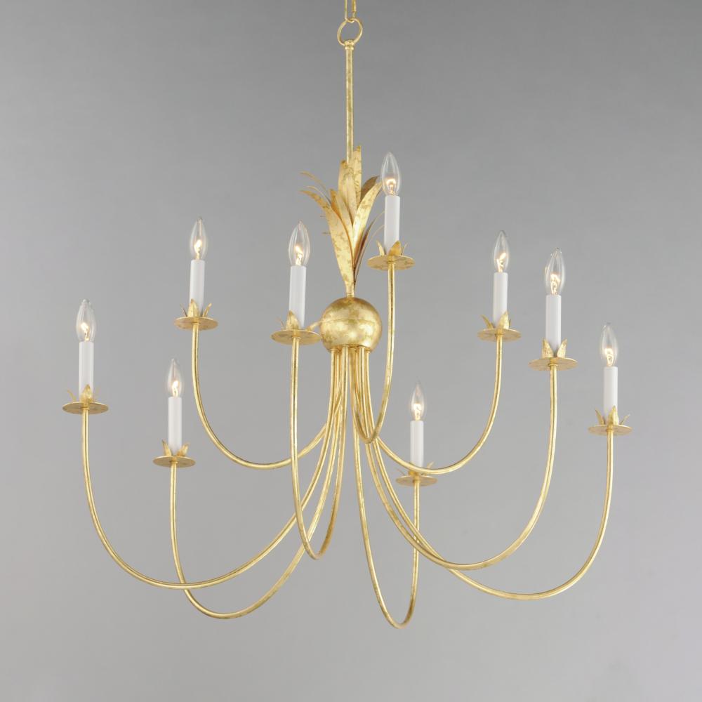 Effortlessly elegant, the biophilic design details that adorn this classic chandelier transport you to an oasis indoors. The design, whether brilliantly gilt in Gold Leaf or hand painted in a textured Anthracite finish, exudes a timeless quality that is su
