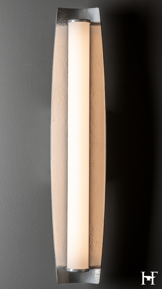 Able to be positioned either vertically or horizontally, the Passage LED Bath Bar makes a statement. Great light delivery, with its opal tube embraced on 3 sides by a beautifully hand-forged and textured steel shield. Simple clean lines make this fixture one that suits a multitude of styles, depending on which finish you select.