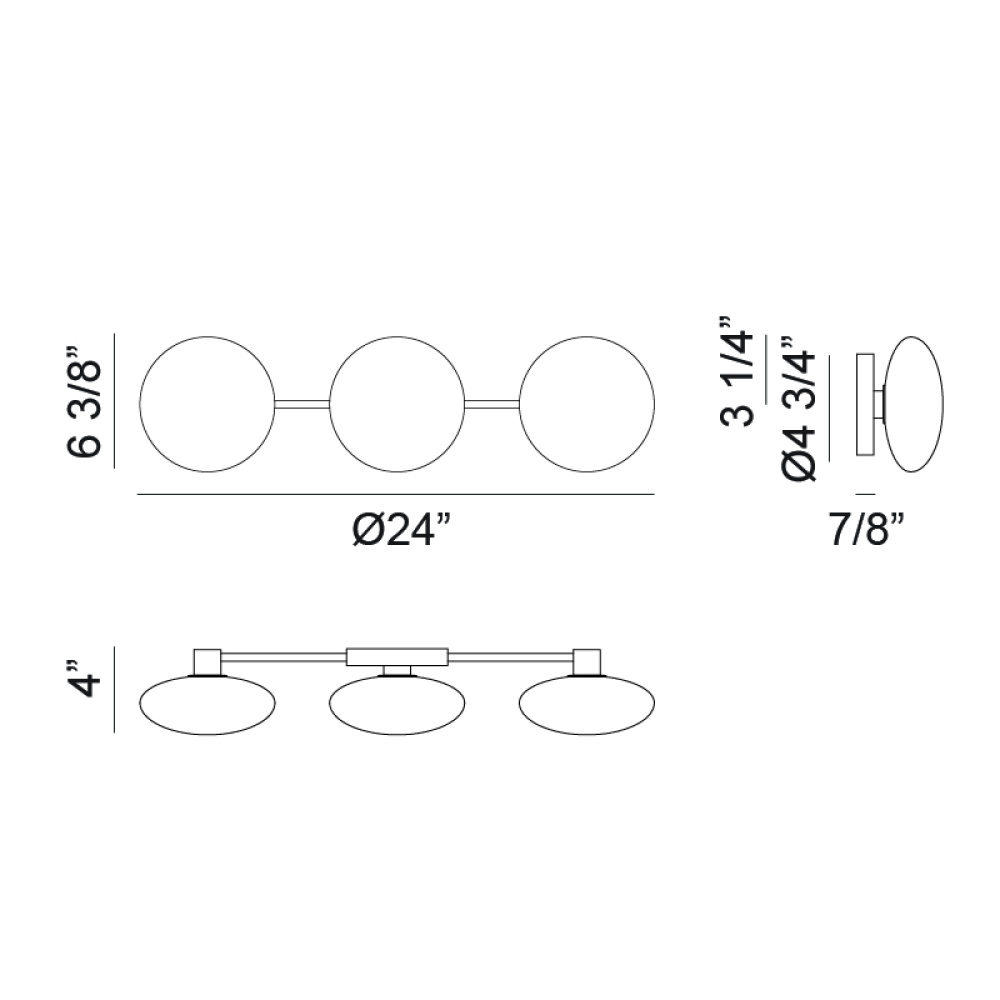 3 LT 24"W "PEARLESQUE" WALL SCONCE -AG-OPAL GLASS