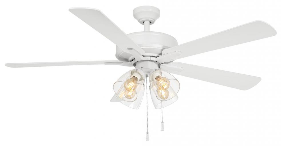 Pecos 52" Matte White Pull Chain Ceiling fan with reversible Vintage Oak/Dark Walnut blades