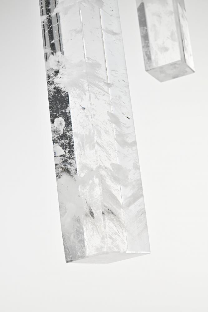 Immerse yourself in the captivating allure of our natural crystal pendant, a stunning piece that embodies the true artistry of nature. Each crystal tells a unique story, with ethereal white clouds and mysterious black specks forming a mesmerizing dance of elements within its clear surface. These wispy inclusions create a serene, dreamlike landscape that evokes both wonder and tranquility. Meticulously crafted over millennia, no two crystals are alike, making each pendant a one-of-a-kind masterpiece. Whether enhancing a modern minimalist space or adding elegance to a classic interior, this versatile lighting piece complements any style with its natural beauty. Suspended by an adjustable 144-inch cord and illuminating with a warm 3000K light at 480 lumens, it brings both sophistication and a calming ambiance to any room.