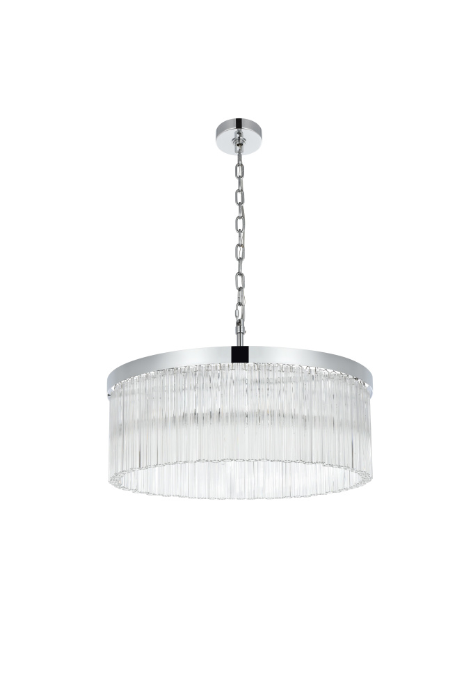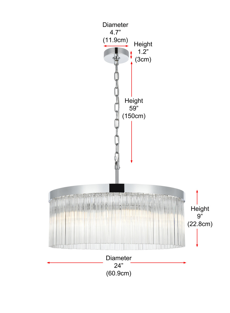 Turn your space into a glowing masterpiece with this striking pendant light, crafted from durable iron and shimmering clear ribbed glass. The cascading layers create a stunning interplay of light and shadow, refracting illumination into a radiant display that transforms your space into an illuminated work of art. Available in chrome for a sleek, contemporary aesthetic, black for bold contrast, and satin gold for an inviting warmth, this pendant light is as versatile as it is beautiful. Whether you choose a single tier for minimalist charm, two tiers for balanced depth, three tiers for bold presence, or four tiers for show-stopping grandeur, there’s an option for every setting. Featuring both round and rectangular frame designs, this fixture adapts to any space with ease. Complete with a matching canopy and chain, and fully dimmable for customized lighting, this pendant pairs perfectly with the coordinating single-tier flush mount and wall sconce collection, ensuring a cohesive, radiant design throughout youhome or office. Please note: light bulbs are sold separately.