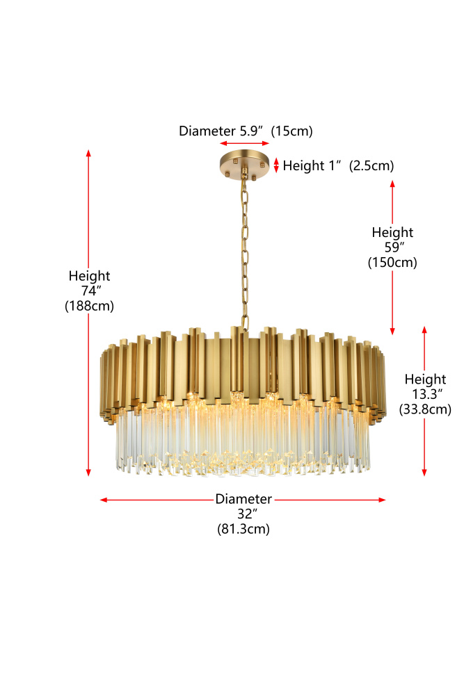 Transform your space with this stunning chandelier, a dynamic fusion of iron and staggered clear glass that exudes contemporary style and architectural artistry. The layered glass refracts light beautifully, creating a radiant display of glowing brilliance that fills the room with warmth and sophistication. The staggered arrangement of the metal and glass adds depth and dimension, making this chandelier an eye-catching centerpiece. Fully dimmable, it allows you to adjust the ambiance to suit any mood, from bright and vibrant to soft and inviting. Available in satin gold for a warm, luxurious vibe, chrome for sleek modernity, and black for bold, dramatic contrast, this fixture comes in various sizes to perfectly complement any space. Complete with a matching canopy, it’s an ideal choice for dining rooms, living rooms, or offices. Add a touch of refined geometry to your décor and bask in the brilliance of this radiant desi