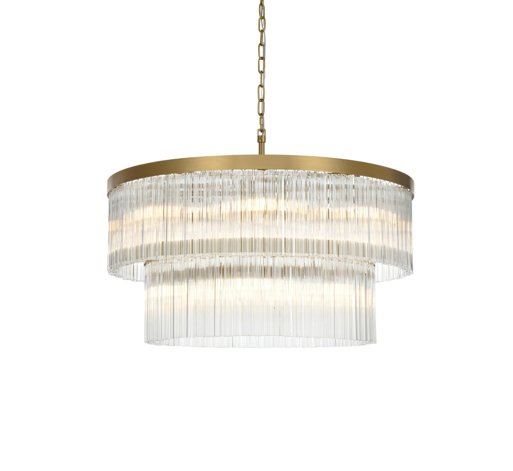 Turn your space into a glowing masterpiece with this striking pendant light, crafted from durable iron and shimmering clear ribbed glass. The cascading layers create a stunning interplay of light and shadow, refracting illumination into a radiant display that transforms your space into an illuminated work of art. Available in chrome for a sleek, contemporary aesthetic, black for bold contrast, and satin gold for an inviting warmth, this pendant light is as versatile as it is beautiful. Whether you choose a single tier for minimalist charm, two tiers for balanced depth, three tiers for bold presence, or four tiers for show-stopping grandeur, there’s an option for every setting. Featuring both round and rectangular frame designs, this fixture adapts to any space with ease. Complete with a matching canopy and chain, and fully dimmable for customized lighting, this pendant pairs perfectly with the coordinating single-tier flush mount and wall sconce collection, ensuring a cohesive, radiant design throughout youhome or office. Please note: light bulbs are sold separately.