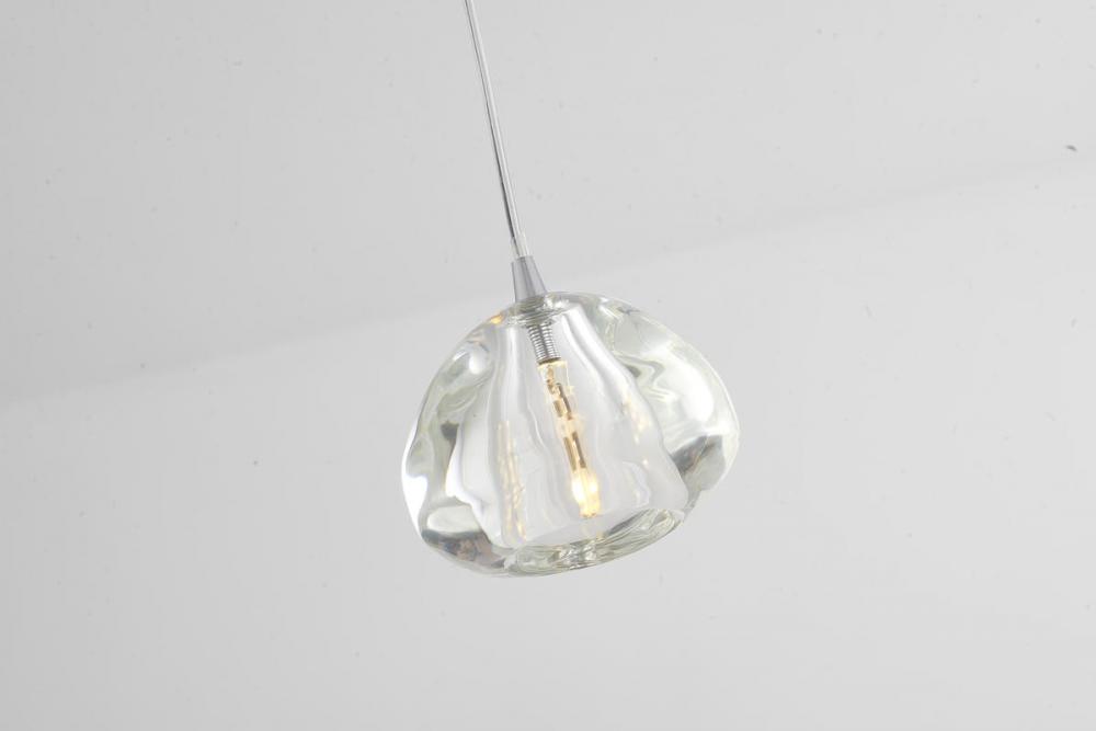 This single pendant is in a chrome finish. The frame is made out of iron, and it comes with a clear glass shade. The cord link can be adjustable. This pendant can be used in any rooms, entryways, and more