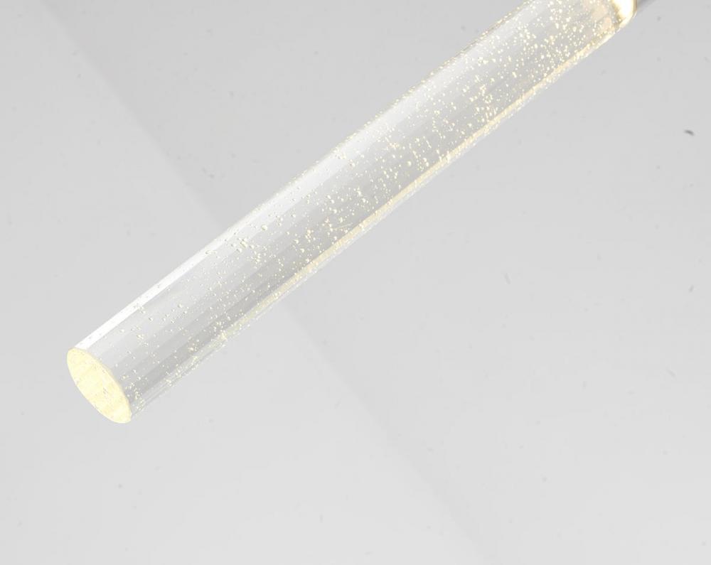 This single pendant is in a chrome finish. The frame is made out of iron, and it comes with a clear bubble glass shade. The LED bulb is integrated into the frame. The cord link can be adjustable.
