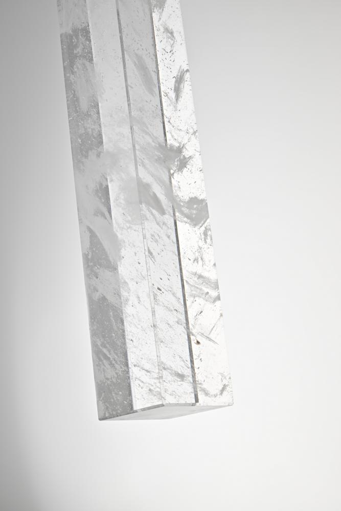 Immerse yourself in the captivating allure of our natural crystal pendant, a stunning piece that embodies the true artistry of nature. Each crystal tells a unique story, with ethereal white clouds and mysterious black specks forming a mesmerizing dance of elements within its clear surface. These wispy inclusions create a serene, dreamlike landscape that evokes both wonder and tranquility. Meticulously crafted over millennia, no two crystals are alike, making each pendant a one-of-a-kind masterpiece. Whether enhancing a modern minimalist space or adding elegance to a classic interior, this versatile lighting piece complements any style with its natural beauty. Suspended by an adjustable 144-inch cord and illuminating with a warm 3000K light at 480 lumens, it brings both sophistication and a calming ambiance to any room.