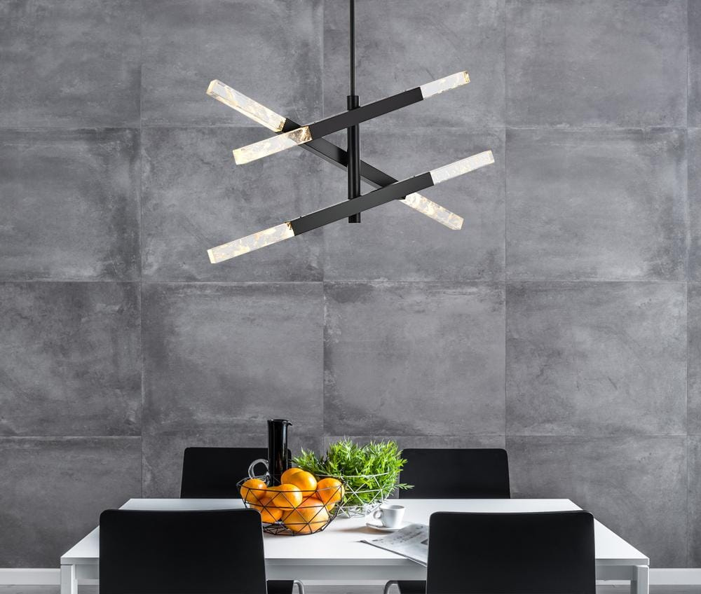 Featuring bold geometric lines and sleek bars, this pendant light is a contemporary statement piece that grabs attention.