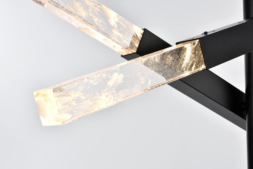 The black finish provides a striking contrast to the glowing crystals, adding a bold, edgy vibe to modern interiors.