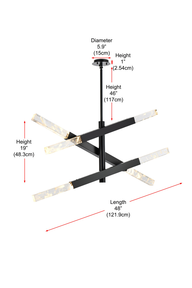Designed with flexibility in mind, it offers a minimum hanging height of 34 inches and a maximum of 69 inches using the included 46-inch rod.