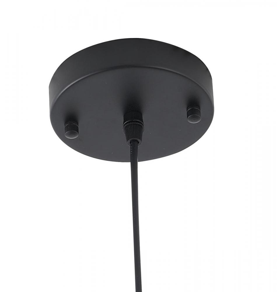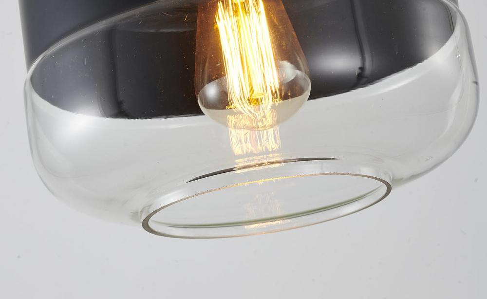 This sing pendant lighting is in a matte black finish. The frame is made out of metal, it comes with a clear glass shade. The adjustable cord link makes this fixture suitable for most ceiling heights.